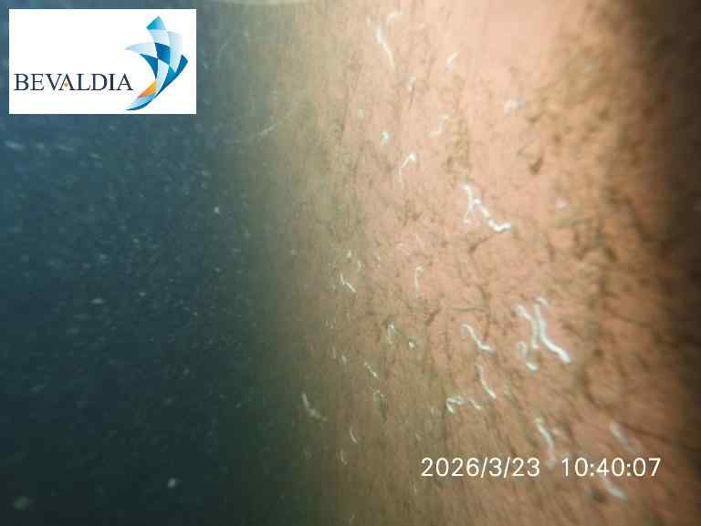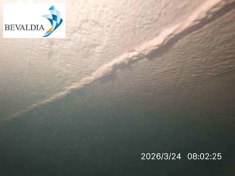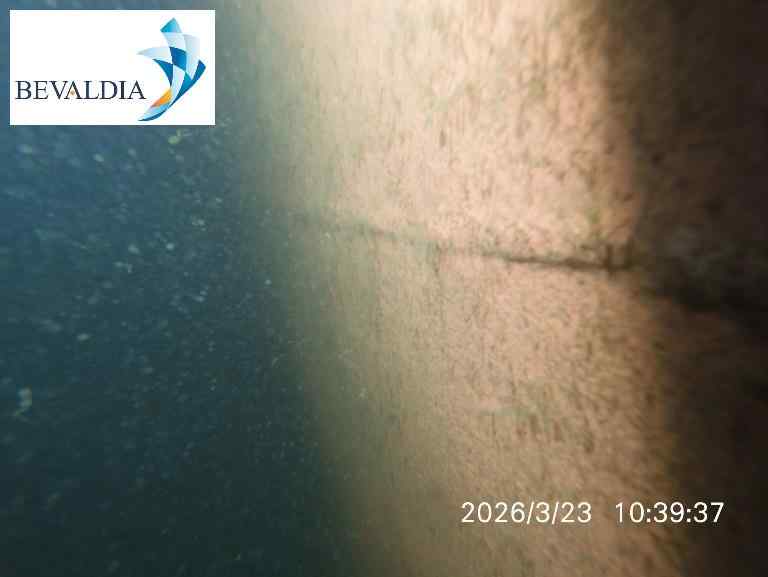 Vertical Sides & Curves: Both sides were found with moderate sea grass and slime covering 30-40% of the area, with thicknesses up to 10mm. The area was cleaned using a brush kart system with 2 pieces of brushes.