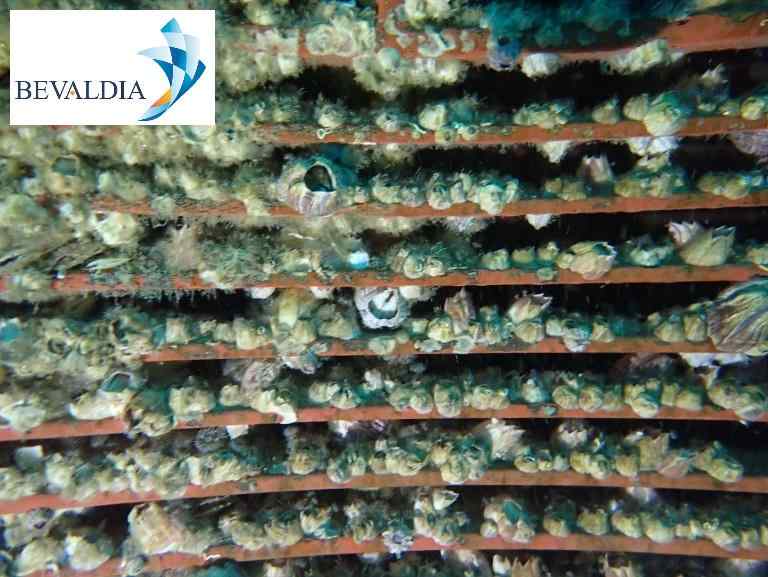 Sea Chest Gratings: A total of two sea chest gratings were found to be clean, while the remaining gratings were found heavily fouled (80-90% area) with barnacles. All grids were in position, including bolts and nuts with securing arrangements, and were cleaned.